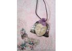 Brož vytvořená z cínu, mědi a grape chalcedonu ve tvaru větvičky. Černá patina. Velikost: 5,5 x 4 cm. Brožový můstek s pojistkou.